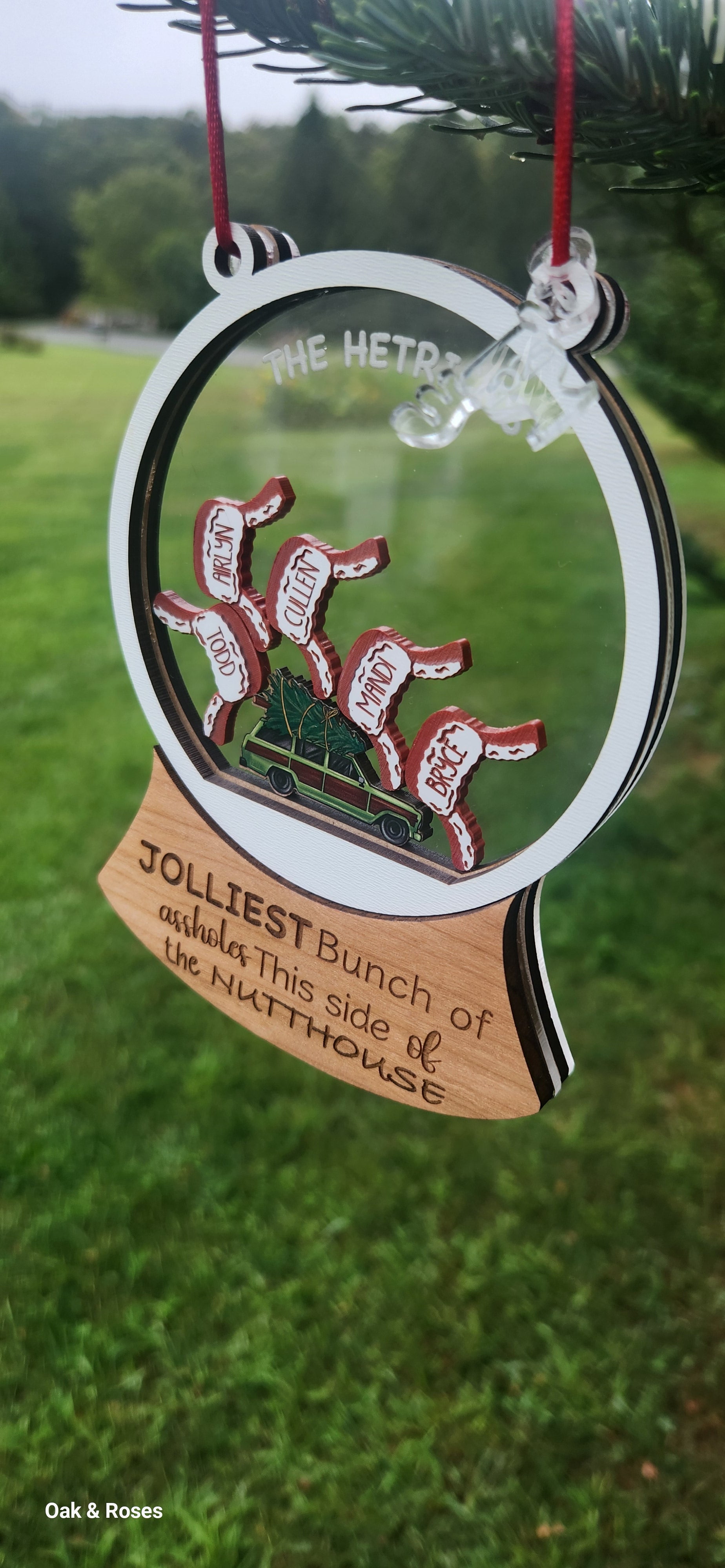Celebrate the holidays with your own Christmas Vacation shaker ornament! Shake it up with a colorful car design and personalized touch. Made with durable acrylic and wood, this ornament will bring joy to your tree for years to come. Own a piece of the Griswold family's iconic vacation and make your Christmas even more special.