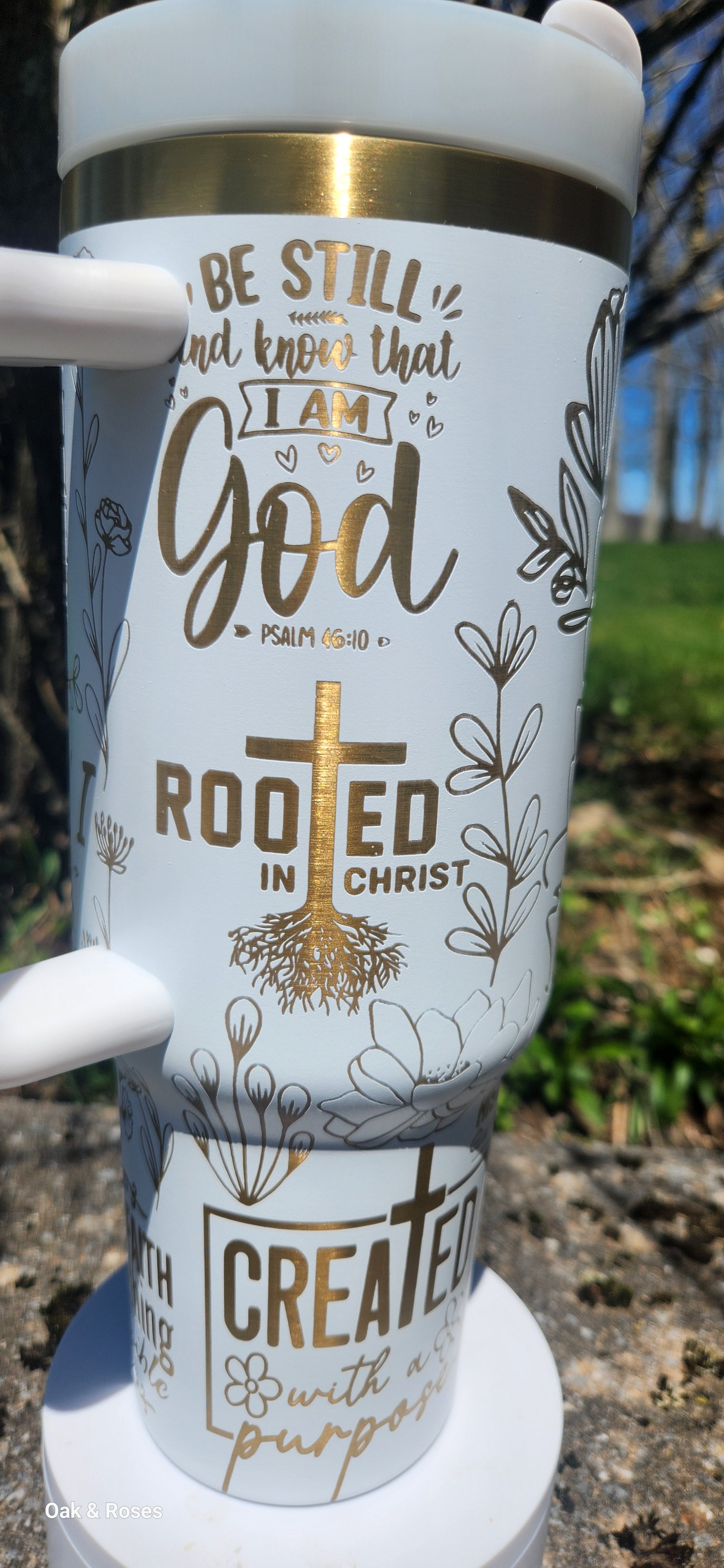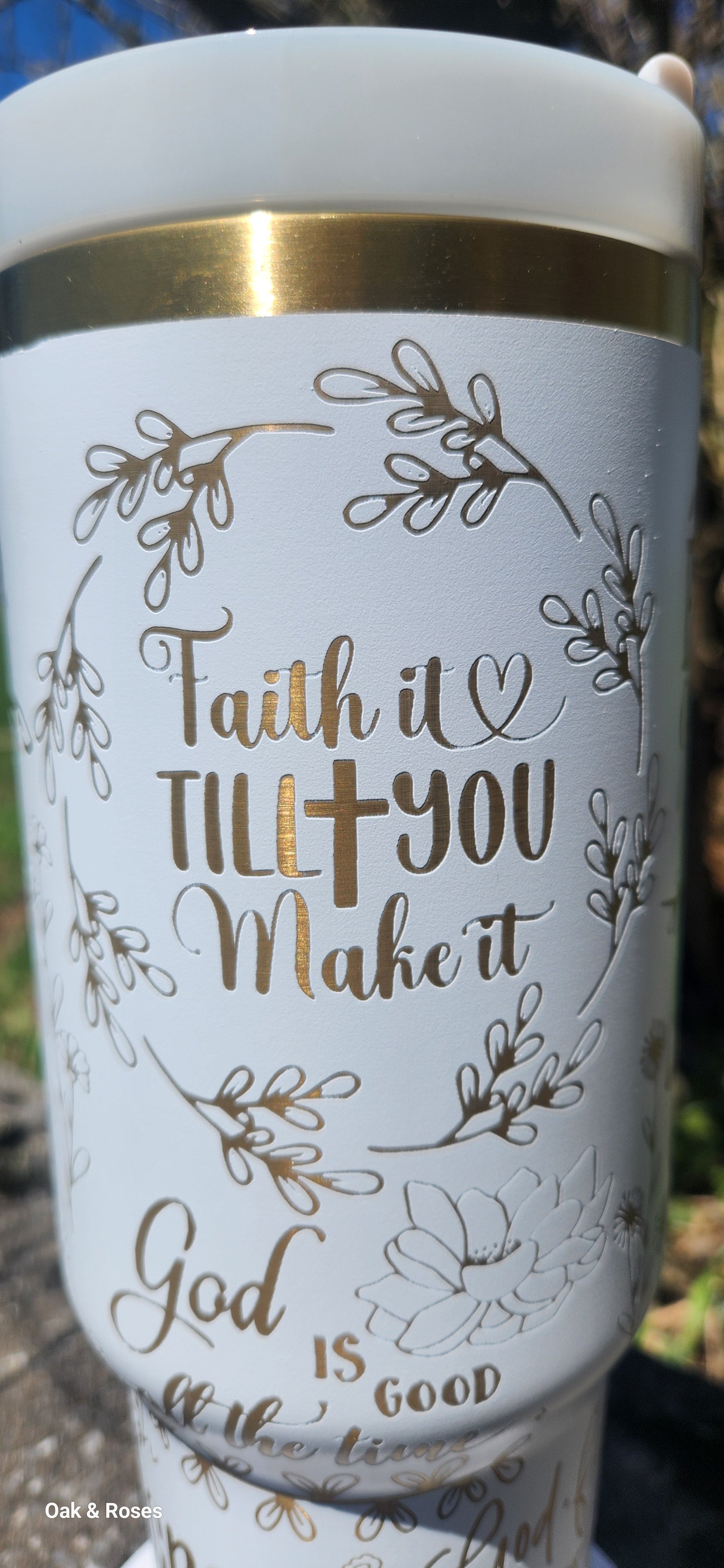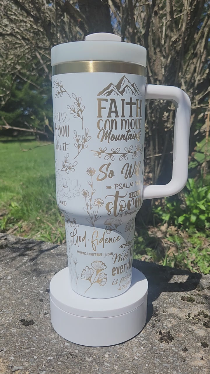 Indulge in luxury with the Stanley Dupe. Expertly designed with a faith tumbler, each sip is engraved with a sense of purpose. This exclusive piece is a tasteful addition to your collection, exuding elegance through its intricate details. Elevate your drinking experience and inspire your soul.